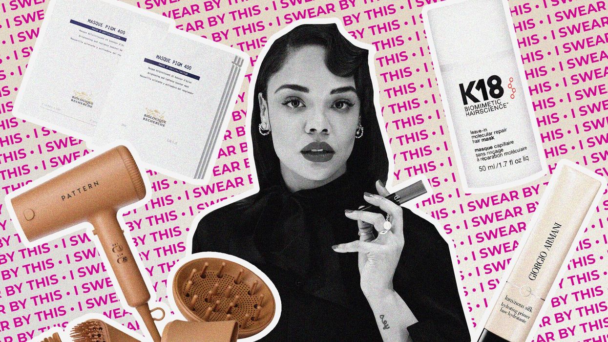 You might be asking, but what does Thompson reach for behind the scenes? “If someone says you have to try this thing, I kind of want to try it instantly,” she confesses. Below, learn what has made it into her beauty bag and the expert tricks that are now part of her regular routine.